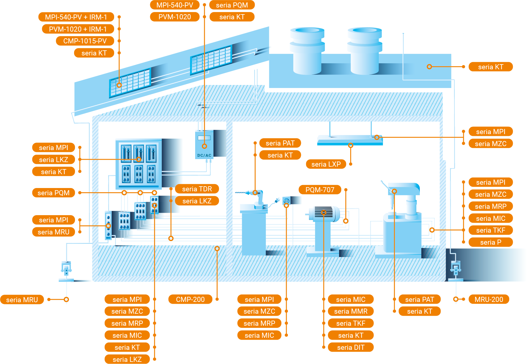 • Aufzeichnung und Reproduktion elektrischer Parameter an der Produktionslinie und Erstellung von Berichten.